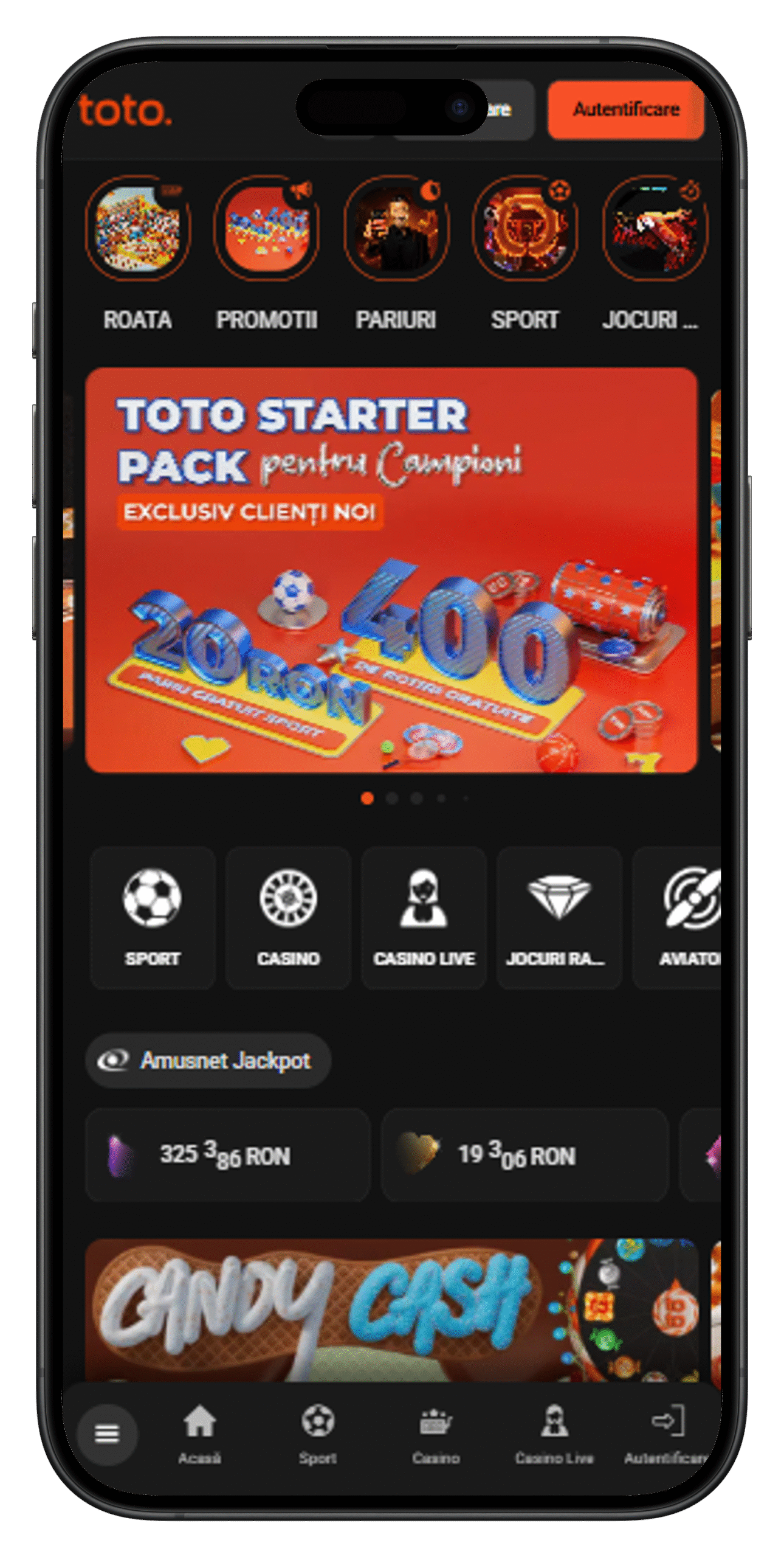 - Conectează-te la contul tău pentru a avea acces la toate zonele, inclusiv TotoGaming pariuri live.