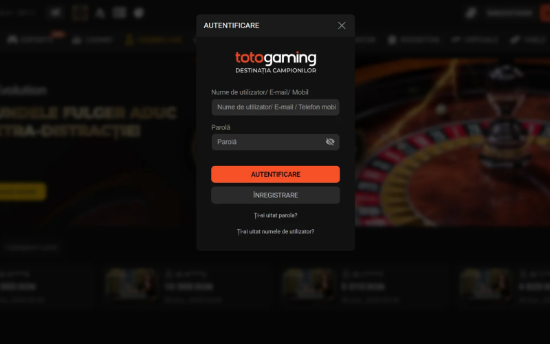- Autentifică-te în contul personal de pe TotoGaming RO folosind datele stabilite la înregistrare.